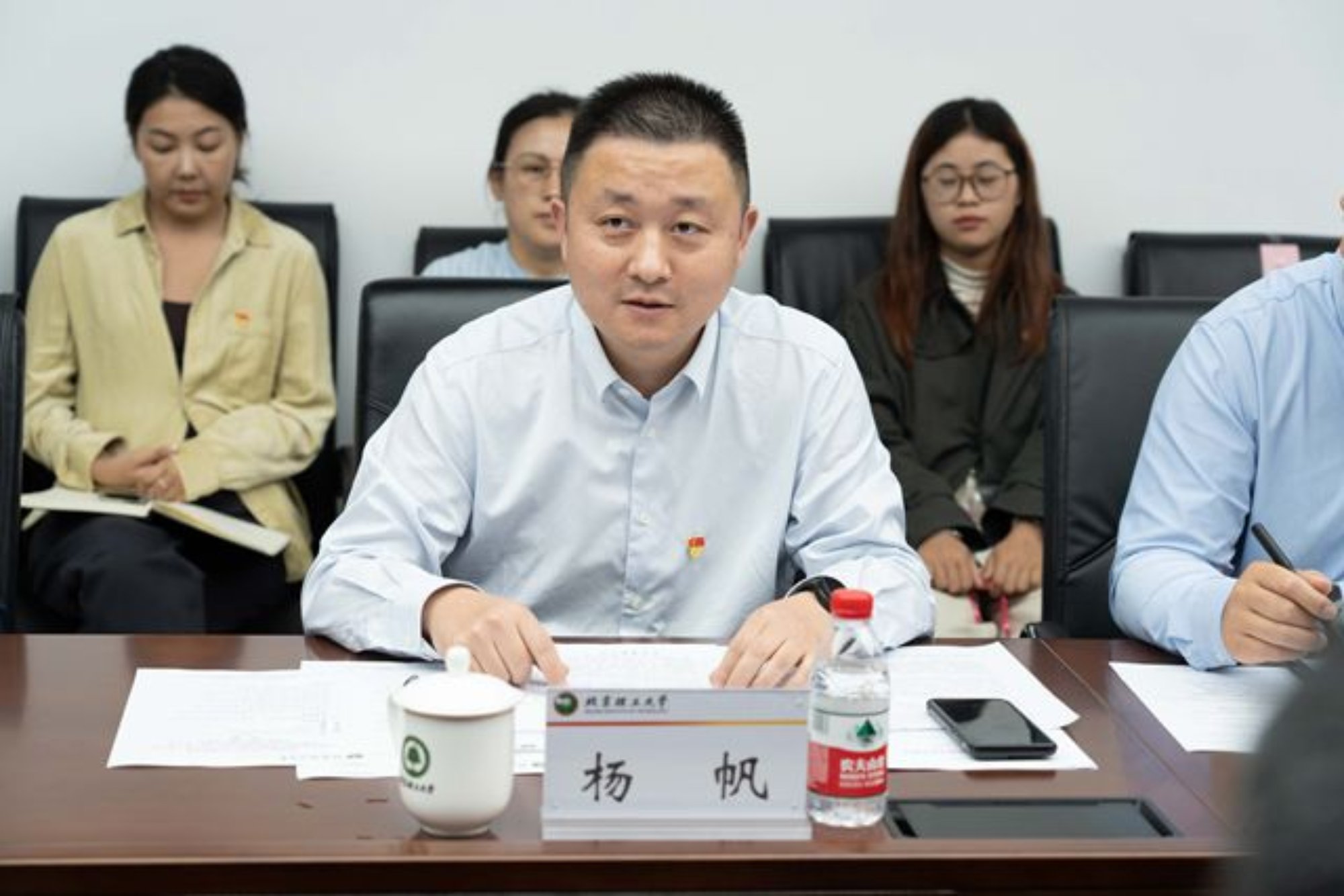 杨帆对中教华影电影院线股份有限公司一行表示欢迎,对大学生在线对我校大学生思想政治工作的关心和指导表示感谢。展望未来,他表示,期望双方从以下三个方面继续深化合作、实现共赢。一是以“联学”提升素养。坚持把强化理论学习作为提升党员干部理论水平、推动工作落实的重要保障,创新形式,共同学习。二是以“联建”建强支部。进一步探讨“联过”支部组织生活、“联建”活动阵地、“联谋”发展思路、“联商”业务课题、“联心”党员干部的方式,增强“体外循环”优势,不断增强党支部活力和创造力。三是以“联动”协同发展。探讨、搭建可长期合作共赢的工作平台,构建长效合作机制,实现多措并举,资源共享的工作模式,充分发挥各自优势、借鉴特色经验,打造纵联横通的党建工作新格局。