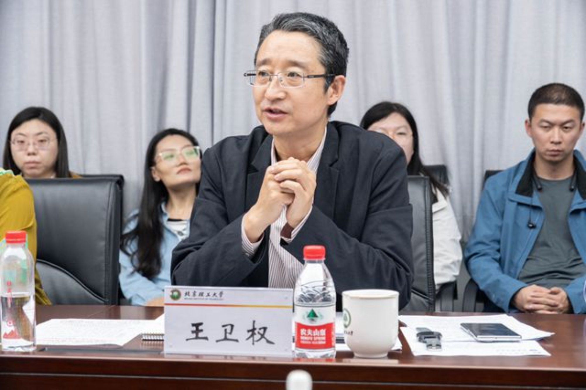 王卫权介绍了中教华影院线股份有限公司聚焦大中小数字思政一体化建设的有关业务情况,重点介绍了中教华影在以中国大学生在线、全国高校思政网为核心形成的“两网两中心一重点项目一秘书处”的网络育人格局。他表示,这次联学共建是共同践行习近平总书记对加快建设教育强国要求的具体行动。高校是教育、科技、人才的集中交汇点,北理工作为一所具有光荣红色传统的高校,不但在服务国防建设、科技发展等方面做出了卓越贡献,在思政教育、教学科研、人才培养等方面也取得了非常好的成绩。他希望,以这次支部联学活动为契机,与北理工进一步扩大交流合作,把思政引领力更好地转化成思政服务力,有效解决学生实际困难;同时,在利用人工智能赋能精准思政、开展学生思想引领、一站式社区建设、大学生心理健康教育等方面加强合作,共同推动双方事业再上新台阶。